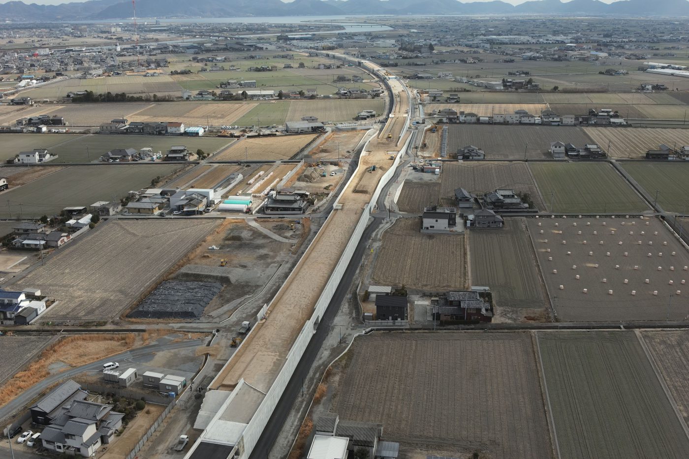 工事概要国道180号岡山環状南道路(改築事業)の一環として、岡山市南区藤田~古新田を結ぶバイパスの宇一部となる、擁壁工・盛土工等を施工